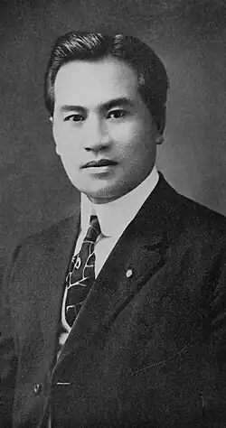 He earned a bachelor's degree in pedagogy at Hartford Seminary in Connecticut, where he was president of his graduating class.[5][6] During the period 1910-11, he was affiliated with the Home Missions Board of Massachusetts. After his return to Hawaii, he served with the Hawaiian Evangelical Association, and was the founder of the Young People's League of Honolulu.[7] Ordained into the ministry in 1912, he was selected as chaplain of the territorial House of Representatives in 1913.[8]