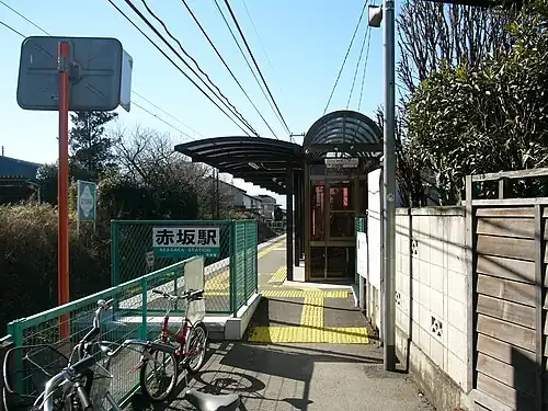 Akasaka Station (赤坂駅, Akasaka-eki) is a passenger railway station in the city of Maebashi, Gunma Prefecture, Japan, operated by the private railway operator Jōmō Electric Railway Company.