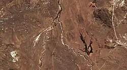 ![]() Sentinel-2 image of the confluence of rivers Akbastau (left) and Nura (right). | |