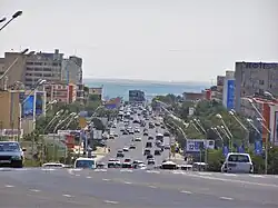 On September 11, 2007, President Nursultan Nazarbayev started the Aktau city project in order to develop tourism and attract investment.[11] A totally new city was to have been built to the north-west of the current city with 4 million square meters of new residential and business buildings. The architecture style would have been derived from UAE's construction experience under the patronage of Sheikh Abdullah ibn Zaid Al Nahayan. In August 2013, the project was called off.[12]