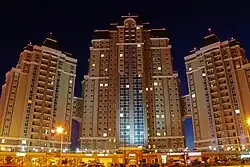 Aktau's beaches are a major tourist attraction, and are most commonly visited from late May to late August, amid warmer weather.[18] During this time, the water temperature of the Caspian Sea is typically around 18 °C (64 °F).[18] Aktau has both rocky hills and sandy beaches along the seashore. Tourists come mainly from other parts of Kazakhstan. Major hotels in Aktau include the Aktau Hotel, the Renaissance Aktau, the Caspian Riviera Grand Palace, the Grand Hotel Victory, Grand Nur Plaza, and the Holiday Inn Aktau.[18] In 2021, it was announced that three rare species of palms with resistance to freezing are being grown as part of an experiment in the Aktau region. The experiment is being performed by the city's Mangystau Experimental Botanical Garden.[19]