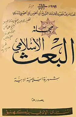 Al-Baas El-Islami (Arabic: البعث الإسلامي, lit. 'The Islamic Recrudescence[1]') is a monthly Arabic magazine published by Darul Uloom Nadwatul Ulama. It was first launched in 1955 by Mohammad al-Hasani under the guidance of Abul Hasan Ali Hasani Nadwi. In 1960, the magazine officially became part of Nadwatul Ulama and has since been published regularly. The magazine focuses on developing linguistic and literary skills among students and is considered the successor to Al-Ziya, the institution's first Arabic magazine.[2] Historically, it has promoted Pan-Islamism, critiqued Arab nationalism and Orientalism, and aimed to make Indian Urdu Islamic scholarship accessible in Arabic.[3] The magazine has had only two editors, beginning with Mohammad al-Hasani and, currently, Saeed-ur-Rahman Azmi Nadvi. Its motto is "Our only slogan is to return towards Islam anew."[4]