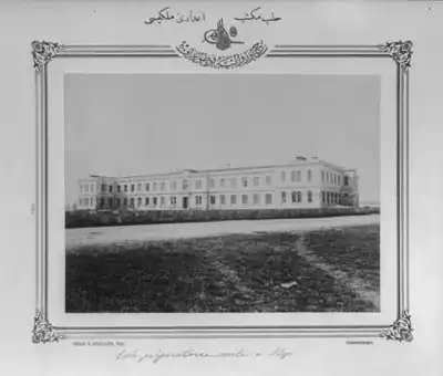 The school, originally named the Preparatory Center[a](Arabic: المكتب الإعدادي), was officially inaugurated on 23 September 1892. Located in the Jamilieh district of Aleppo, it was the first of its kind to teach modern sciences to students from Aleppo as well as other areas, including Antioch, Malatya, Hama, Latakia, and the Euphrates region. In 1912, the school was renamed the Sultani Center[a] (Arabic: المكتب السلطاني). Later, in 1920, it became known as Aleppo Preparatory (Arabic: تجهيز حلب), merging with the Teachers' House in 1933. The current name, Al-Mamoun High School, was adopted in 1947 by the then-principal Abdel-Ghani Al-Joudeh after the Teachers' House was separated from it.[1]