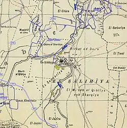 Al-Salihiyya (Arabic: الصالحية) was a Palestinian Arab village populated by people traditionally associated with the Ghawarna, a generic exonym denoting inhabitants of the drainage plains of the Hula Valley.[5] It was depopulated during the 1948 War on May 25, 1948, by the Israeli Palmach. It was located in the Safad Subdistrict, 25 km northeast of Safad, at the intersection of the Jordan River and Wadi Tur'an.