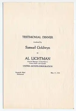 In 1921 he joined United Artists but left to become president of Preferred Pictures in 1923. He rejoined United Artists as sales manager in 1926 and, following the death of Hiram Abrams, Lichtman was made vice president in 1927, heading domestic distribution.[1][2] He was promoted to president of the company in 1935, but resigned after only a few months due to a fallout with Sam Goldwyn over the production of Barbary Coast (1935).[2]
