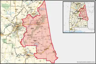For the 119th and successive Congresses (based on the districts drawn following the Supreme Court's decision in Allen v. Milligan), the district contains all or portions of the following counties and communities.[5]