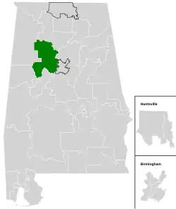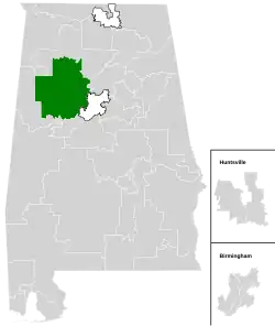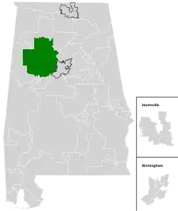 The district covers the entirety of Fayette, Lamar, and Walker counties, as well as portions of Jefferson and Tuscaloosa counties.[2]