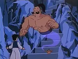 A young boy named Aladdin lives a poor life with his mother. A shifty man named Hassim approaches Aladdin claiming to be his long lost uncle and persuades him to come on a journey promising riches. Once in the desert amid some ruins, Hassim performs an incantation to open a cave and Aladdin realizes that Hassim is not his uncle. Hassim only brought him here because he is the only one who can enter the cave interior. Aladdin reluctantly enters the cave and finds what Hassim was looking for: an old lamp. Fearing that Hassim will kill him after he gets what he wants, Aladdin refuses to hand over the lamp and Hassim closes the cave trapping Aladdin. Unwittingly, Aladdin rubs the lamp and releases a powerful genie who can grant any wish. Aladdin makes a wish to return to his home. After his safe return, Aladdin's mother disregards the lamp and Aladdin keeps it hidden and remains silent about it.
