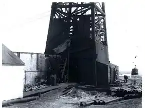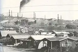 The Alamitos oil well #1 or Alamitos #1 is the site of a famous oil well in Signal Hill, California, the start of the Long Beach oilfield. The spot is also known as Porcupine Hill. The Alamitos well #1 was designated a California Historic Landmark (No. 580) on May 1, 1957. The Signal Hill oil discovered in 1921 became the black gold of Southern California. Alamitos #1 started drilling on March 23, 1921. The leader of the drilling was O.P. "Happy" Yowells. On June 23 at 9:30 a.m. the drill, at about 2,765 feet down, hit oil that was trapped underground. The trapped oil was pressurized by natural gas. The pressure pushed the blowout oil 114 feet into the air, when the drill hit the oil. The drilling rig collapsed in the blowout. A new clean well was drilled nearby and started production on June 25, 1921. Alamitos oil well #1 put out 600 barrels a day and 700,000 barrels before running out.[1][2]