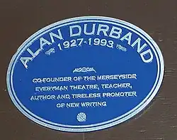 To mark this era, Willy Russell unveiled a plaque in memory of Alan Durband at the theatre in 1998 in the company of actor Pete Postlethwaite who acknowledged a great personal debt to his time spent on the stage at The Everyman.