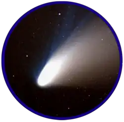 On July 23, the IAU issued Circular 6187[2] to announce the joint discovery of the new comet.[16] Per Hale, calculations indicate that Hale–Bopp likely last appeared on the order of 4000 years ago, but any record of this previous encounter had not yet been positively identified from ancient records.[4] It has also been determined that Hale–Bopp will not return to the inner Solar System until approximately 4385.[18][19]