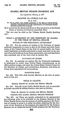 - ^ Alaska Mental Health Bill, H.R. 6376, January 16, 1958.