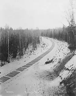 At about this time, the United States government was planning a railroad route from Seward to the interior town of Fairbanks. President William Howard Taft authorized a commission to survey a route in 1912. The line would be 656 miles (1,056 km) long and provide an all-weather route to the interior.[7]