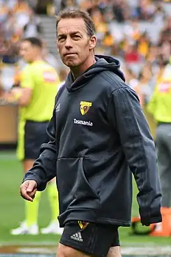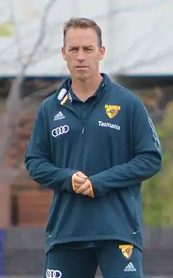 Alastair Thomas Clarkson (born 27 April 1968[1]) is an Australian rules football coach and former player. He is currently the head coach of the North Melbourne Football Club in the Australian Football League (AFL) and was previously head coach of the Hawthorn Football Club from 2005 to 2021, where he won four premierships (2008, 2013, 2014, 2015).