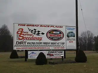 Albany-Saratoga Speedway is a 0.36-mile dirt oval on U.S. Route 9 in Malta, New York. The track features racing on Friday nights, with five different weekly racing divisions, including DIRTcar modifieds, DIRTcar sportsman, limited sportsman, pro stocks and street stocks and also four cylinder racers.