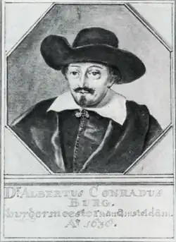 Albert Coenraadsz Burgh (1593 – 24 December 1647) was a Dutch physician who was mayor of Amsterdam and a councillor in the Admiralty of Amsterdam.