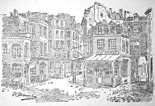 Immediately upon their accession to the directorship of the Théâtre de la Monnaie, on 1 June 1900, Maurice Kufferath and Guillaume Guidé appointed Dubosq the Monnaie's second peintre-décorateur attitré, next to Devis and Lynen. Dubosq's first contribution to the Monnaie was the “Quartier Latin” set for Giacomo Puccini’s La (vie de) bohème, Act II. Premiered on 25 October 1900 under the supervision of the composer and publisher Tito Ricordi, this production enjoyed thirty performances in its first run alone and would keep the stage until 1949. Significantly, Puccini and Riccordi were so enthralled by Dubosq’s effort that they had it photographed and incorporated in Riccardo Salvadori’s new design for Act II of Puccini’s masterpiece.[3]