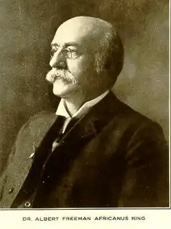 Albert Freeman Africanus King (18 January 1841 – 13 December 1914) was an English-born American physician who was pressed into service at the assassination of Abraham Lincoln on 14 April 1865. He was one of a few physicians who served in both the Confederate States Army and the United States Army during the American Civil War. In addition, King was one of the earliest to suggest the connection between mosquitos and malaria.