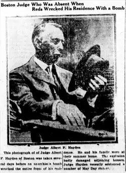 Albert Fearing Hayden (May 5, 1865 – April 21, 1962) was an American judge who presided over the sentencing of people arrested during the May Day riots of 1919. This made him a target during the 1919 United States anarchist bombings when his house was bombed.