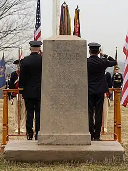Myer is honored by several entities: Fort Whipple, Virginia, was renamed Fort Myer in 1881; U.S. Army cable ship Albert J. Myer built in 1945 serving Army Signal Corps 1952–1966 then U.S. Navy service 1966–1994; the Albert J. Myer Center, the Signal Headquarters building of the U.S. Army Communication Electronics Command (CECOM) at Fort Monmouth, New Jersey; and the General Albert J. Myer Forecast Facility at the Buffalo Niagara International Airport. Hobart College awarded Myer an honorary LL.D. degree in 1872 and Union College conferred an honorary Ph.D. on him in 1875.[1]
