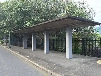 The second design was the pillbox with single-cantilevered roof slab, or "bus" type shelter, as it was called in the original Brisbane City Council list. These were designed so that the three brick blast walls could be removed after the war, leaving a concrete back wall and five brick piers at the front. Again, entrances were at each end of the front wall. Of the 19 "bus" types listed only two survive, at Newmarket and Newstead.[1]