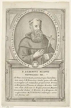 - ^ Arnald of Sarrant. "The Generalate of Brother Albert of Pisa", Chronicle of the Twenty-Four Generals of the Order of Friars Minor, (Noel Muscat ofm, trans.) Ordo Fratrum Minorum. Malta, 2010.