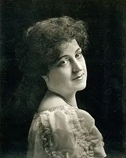In January 1900 Gallatin played Mrs. Bulford at Boston's Castle Square Theatre in The Great Diamond Robbery, a crime thriller by Edward M. Alfriend and Andrew Carpenter Wheeler (aka Nym Crinkle).[29] The following month she appeared at the Murray Hill Theatre, Manhattan as Margaret Knowlton to the Andrew Knowlton of Edmund Redmund in The Lost Paradise, Henry Churchill de Mille's adaptation of the Ludwig Fulda drama Das Verlorene Paradies.[30] In late March 1900 Gallatin began a long tour playing the title role in Clyde Fitch's controversial play Sappho that had made its Broadway debut earlier in the year with Olga Nethersole;[31][32] Nell Gwyn in Harold Cator Heverin's Under the Restoration (1900–01);[33] Rosalind in Shakespeare's comedy As You Like It (1903);[34] Mrs. Alving in Ibsen's domestic tragedy, Ghosts (1903–04);[35] Tracy Auberton in A Clean Slate (1905), a comedy by R. C. Carton (Richard Claud Critchett);[36] Kate Curtis in the Hubert Henry Davies social comedy Cousin Kate (1906);[37] the title role in her dramatization of Charles Major's novel Dorothy Vernon of Haddon Hall (1907);[38] and the starring role in Marie Manning's Judith of the Plains (1907–08), a Western romance adapted for the stage by Algernon Tassln and Mary Stone.[39]