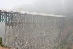 The Albion River Bridge is a wooden deck truss bridge crossing the Albion River in Mendocino County, California. It is the only remaining wooden bridge on California State Route 1;[1][2] dramatic views of the bridge are visible from the nearby town of Albion, California.[3] It was listed on the National Register of Historic Places in July 2017.
