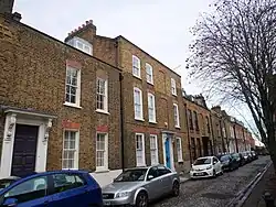 The early trade unionist John Gast (1772–1837) worked as a shipwright in the Deptford Dockyard and later ran the King of Belgium (then the King of Prussia) public house at No. 6, Albury Street.[4] The street survived largely intact until the 1950s when a programme of conservation by the London County Council was commenced. Bridget Cherry and Nikolaus Pevsner, in their London 2: South volume in the Buildings of England series revised and reissued in 2002, describe the result as an example of "appalling bureaucratic bungling".[3] By the early 1970s, most of the houses on the south side had been demolished and replaced by local authority housing, while many of the elaborate doorcases, which had been removed for safe storage, were lost to theft. As at 2024, only four intact houses remain on the south side, while the northern run is in a better state of preservation.[3] Dr Anthony Quinney, professor of Architecture at the University of Greenwich describes the remaining run of houses on Albury Street as; "among the few survivors in the whole of London from the first two decades of the eighteenth century and ... as one of the most important treasures architecturally and historically among domestic buildings in London".[5]