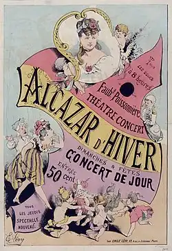 The Alcazar (later Alcazar d'Hiver) was a Café-concert which opened in 1858, located at 10 Rue du Faubourg Poissonière in Paris, and closed in 1902.