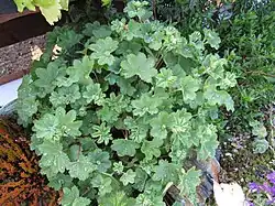 Alchemilla erythropoda, the dwarf lady's mantle, is a species of flowering herbaceous perennial plant in the family Rosaceae, native to Eastern Europe. It forms a clump of hairy, palmate leaves up to 20 centimetres (7.9 in) high, with sprays of green-yellow flowers in early summer.[1] The leaves of this and its relative A. mollis are noted for being highly water-repellent.[2] It is smaller than A. mollis, however, and its leaves may develop a reddish tinge if grown in full sun.[3]