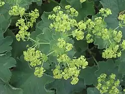 According to some accounts, lady's mantle has been used for centuries as a herbal remedy.[5] According to other authorities, however, it has never been used medicinally, but has been confused with two species that have a history of medicinal use: A. alpina (Alpine lady's mantle) and A. xanthochlora.[6]
