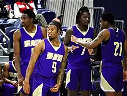 Braves basketball players during a game at Tudor Fieldhouse in 2024