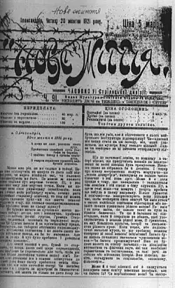 - Nasze żittia (English: Our Life): a satirical parody of Nowe życie. The first issue in February 1921 was confiscated by internal censorship, and no further issues were published;[31]