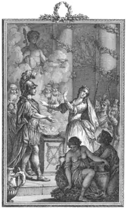 The libretto tells the story of the Indian campaign of Alexander the Great and his defeat of king Porus in 326 BCE at the Battle of the Hydaspes. After the battle the two kings were reconciled and Alexander left Porus as ruler of his kingdom. The action takes place on the banks of the Hydaspes, where Alexander's camp stands on one side of the river and the residence of Cleofide on the other.[1][4]
