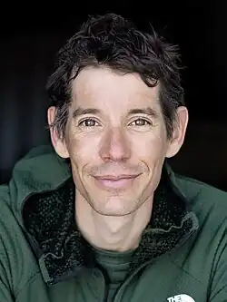 Alex Honnold (born August 17, 1985) is an American rock climber best known for his free solo ascents of big walls. Honnold rose to worldwide fame in June 2017 when he became the first person to free solo a full route on El Capitan in Yosemite National Park (via the 2,900-foot route Freerider at 5.13a, the first-ever big wall free solo ascent at that grade),[3] a climb described in The New York Times as "one of the great athletic feats of any kind, ever."[4][5] In 2015, he won a Piolet d'Or in alpine climbing with Tommy Caldwell for their completion of the enchainment (known as the Fitz Traverse) of the Cerro Chaltén Group (or Fitzroy Group) in Patagonia over 5 days.