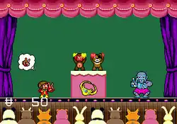 Alex Kidd in a rock paper scissors match against a gorilla to win a powerbracelet