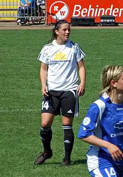 Following the WPS season, Krieger returned to Germany to play with FFC Frankfurt for the 2009–10 season, starting with a match on September 20, 2009, against VfL Wolfsburg.[31] She made 15 appearances in the regular season to help FFC Frankfurt finish third in the Bundesliga.[31][32] Due to their third-place finish, Frankfurt did not qualify for UEFA Champions League.[32] Krieger also appeared during two matches of the Frauen DFB–Pokal on November 14 and December 19.[31] In February 2010, Krieger's contract with Frankfurt was extended for an additional year until June 2011.[4]
