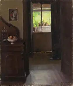 “His paintings were impressionistic, but tempered by Folingsby's Munich style [ . . . ] His original sombre palette lightened with more impressionistic flavour and a greater sense of light and shade as his subjects changed from interiors to landscapes.”[14]