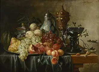 - ^ Alexander Coosemans (Antwerp 1627–1689), Peaches, grapes, corn on the cob, pomegranates and a melon on a stone floor at Christie's