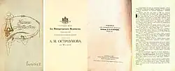 - ^ Ostroumov, Alexander (1912). Nashi Artistki (Our Artists). Typography Partnership A. I. Mamontov, Moscow. pp. 1–4.