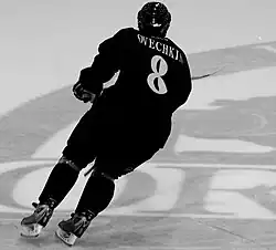 Alexander Mikhailovich Ovechkin (Russian: Алексaндр Михайлович Овечкин, romanized: Aleksandr Mikhaylovich Ovechkin, pronounced [ɐlʲɪˈksandr ɐˈvʲetɕkʲɪn]; born 17 September 1985) is a Russian professional ice hockey left winger and captain of the Washington Capitals of the National Hockey League (NHL). Nicknamed "the Great 8" (in reference to his jersey number) and "Ovi", as well as "Alexander the Great" (Russian: Александр Великий) by Russian media, Ovechkin has scored the most career goals in NHL regular season history.[1][2][3]