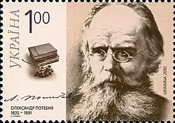 Alexander Afanasyevich Potebnja (Russian: Алекса́ндр Афана́сьевич Потебня́; Ukrainian: Олекса́ндр Опана́сович Потебня́, romanized: Oleksandr Opanasovych Potebnia; September 22, 1835 – December 11, 1891) was a Russian Imperial linguist, philosopher and pan-Slavist of Ukrainian Cossack descent, who was a professor of linguistics at the Imperial Kharkov University.[1][2][3] He is well known as a specialist in the evolution of Russian phonetics.