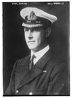 Ramsay took part in several important naval operations of the First World War. He took part in the first phase of the bombardment of the Dardanelles forts in November 1914,[1] and later at Gallipoli. He received the Distinguished Service Order for his conduct there. Ramsay rose to the rank of commander in late 1914 and became flag commander of the Second Squadron in 1916.[1] He gained promotion to captain in 1919 and served as the naval attaché in Paris for the next three years.[1]