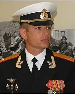 Alexei[a] Borisovich Berngard (Russian: Алексей Борисович Бернгард; born in 1978, Chita Oblast, RSFSR, Soviet Union ) is a Russian serviceman, colonel. Berngard is deputy brigade commander of the 810th Guards Naval Infantry Brigade. He earned the Hero of the Russian Federation for participation in the Russian invasion of Ukraine and his leadership during the Battle of Volnovakha.[1][2][3]