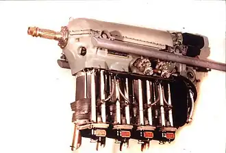 The Alfa Romeo 110 was an Italian four cylinder air-cooled inverted inline engine for aircraft use, mainly for trainers and light aircraft. The Alfa Romeo 110 was based on the de Havilland Gipsy Major, with approximately 500 units produced. Derivatives of the 110 include the -1, ter and Alfa Romeo 111[1] (possibly a mis identification of the 110-1).