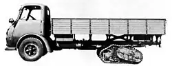 The Alfa Romeo 800 is an Italian heavy truck produced by Alfa Romeo between 1940 and 1947. It was first produced as a military version 800RE[3] and after the war as a civilian version. The military version was initially used only in the Italian Army ("Regio Esercito"), mainly in North Africa, Russia and occupied France.[4] The 800 was equipped with an 8.7 L diesel engine and could reach a top speed of 50 kilometres per hour (31 mph).[1] There were also gas generator and gasoline models produced. A half track prototype version a CSEM 800RE (Centro Studi ed Esperienze della Motorizzazione - the Italian Army's vehicle research and development organization) was also made for Italian army.[5] Some of 800RE were also converted to German Army as Maultier, this vehicle had also tracks in rear.[6]