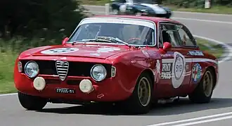 The Giulia 1600 GTA-SA ("sovralimentato", English: supercharged) (1967–1968) was a very rare racing car of which only 10 were built. It featured a 1570 cc twin-ignition engine with two oil-driven superchargers, and could produce up to 250 PS (180 kW; 250 hp) at 7,500 rpm. The GTA-SA was built for FlA Group 5 racing in Europe, and won first place overall in the Hockenheim 100 mile endurance race in 1967 in the hands of German driver Siegfried Dau.[3][4] In the Netherlands, Rob Slotemaker and Nico Chiotakis also drove the GTA-SA.