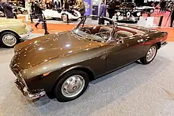 The 1963 Giulia GT Spider was intended as a replacement for the Pininfarina-designed Giulia Spider. Centro Stile Alfa Romeo and Bertone presented a proposition for a two-seater sports car that was developed between 1962 and 1963. Chassis type 105.03 was the same as the future "Duetto" Spider. The car was designed by Ernesto Cattoni and realised by Bertone. The overall style was very similar to the Giugiaro-designed, coupé version of Giulia, but on a shorter chassis. The car never went into production and remained a prototype, bearing serial number 002.[11]
