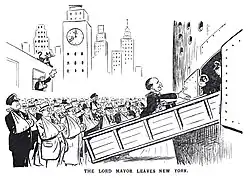When, in 1935, Byrne became the first Lord Mayor of Dublin to visit North America in 40 years, he was granted the freedom of Toronto, and The New York Times hailed the arrival of a "champion showman".[6] Byrne often extended a hand of friendship to Britain. He also improved relations between Dublin (until recently the centre of British authority) and the rest of the country. One night Dublin Fire Brigade got an urgent call for assistance from Clones.[21] As Lord Mayor, Byrne felt obliged to join the men on top of the fire engine as they set off on the 85-mile journey in the middle of the night.[22]